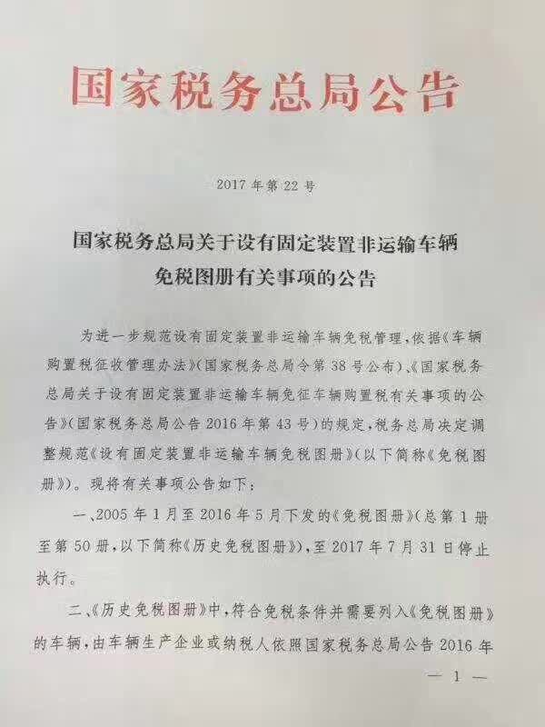 國(guó)家稅務(wù)總局關(guān)于設(shè)有固定裝置非運(yùn)輸車(chē)輛免稅圖冊(cè)有關(guān)事宜的公告