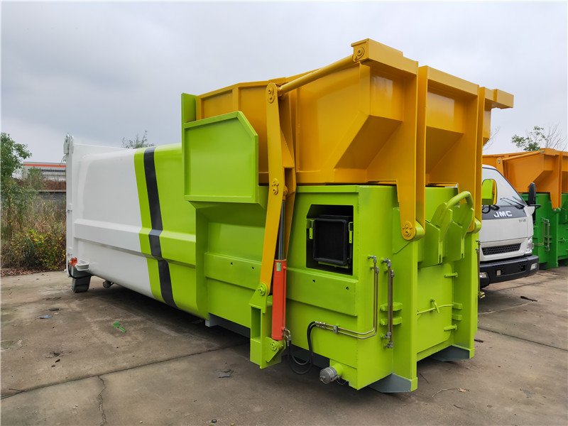 勾臂垃圾車【車廂可卸式垃圾車】車體和垃圾箱可完全分離,由液壓系統(tǒng)來(lái)完成收箱/放箱,在平日里可將車載垃圾箱放置到各個(gè)垃圾收集點(diǎn),待垃圾收集滿后,該車可直接開(kāi)赴收集點(diǎn),通過(guò)液壓系統(tǒng)的操控,可將垃圾車后座上加裝的勾臂放下,掛住站內(nèi)箱體前端的連接點(diǎn),將垃圾箱拉**車體的后座上,此時(shí)即可開(kāi)動(dòng)車輛,將垃圾運(yùn)送垃圾處理站內(nèi),進(jìn)行自卸式傾倒,優(yōu)點(diǎn)就是可一車配多斗,一輛車就可以維持?jǐn)?shù)個(gè)垃圾收集站的運(yùn)轉(zhuǎn),效率高,且箱體為密封式設(shè)計(jì),不會(huì)造成二次污染。