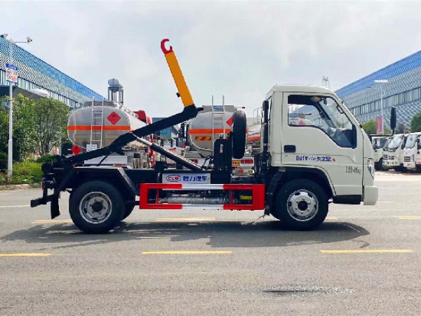 勾臂垃圾車【車廂可卸式垃圾車】車體和垃圾箱可完全分離,由液壓系統(tǒng)來完成收箱/放箱,在平日里可將車載垃圾箱放置到各個(gè)垃圾收集點(diǎn),待垃圾收集滿后,該車可直接開赴收集點(diǎn),通過液壓系統(tǒng)的操控,可將垃圾車后座上加裝的勾臂放下,掛住站內(nèi)箱體前端的連接點(diǎn),將垃圾箱拉**車體的后座上,此時(shí)即可開動(dòng)車輛,將垃圾運(yùn)送垃圾處理站內(nèi),進(jìn)行自卸式傾倒,優(yōu)點(diǎn)就是可一車配多斗,一輛車就可以維持?jǐn)?shù)個(gè)垃圾收集站的運(yùn)轉(zhuǎn),效率高,且箱體為密封式設(shè)計(jì),不會(huì)造成二次污染。