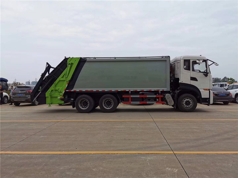 上裝配置:廂體圓弧設(shè)計(jì)(增強(qiáng)廂體承受力),Q345錳鋼板(高強(qiáng)度耐磨抗壓材質(zhì),罐體試用壽命更長(zhǎng)),前后雙向壓縮,推鏟卸料,長(zhǎng)源液壓泵,中梅多路換向閥,維森博樂油缸,高耐壓液壓油管,西門子PLC一鍵系統(tǒng)(駕駛室內(nèi)外均可操作),移動(dòng)遙控器箱體操作,雙污水箱(前后各一個(gè)),邊燈,高位示廓燈,夜間作業(yè)燈。